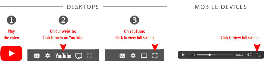 Follow these easy steps to view any of the videos on this page full screen on a desktop computer or mobile device:
