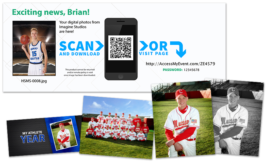 Our hhimagehost Digital Download helps you sell digital files in prepay or proof plan sales that are delivered via your hhimagehost 2nd sale event. Your studio customer can purchase a package that includes a high res file and a 4x10 insert which serves as the window envelope receipt with download instructions. They can then log into your hhimagehost event using the password on the insert and download a high resolution digital file. This is a completely automated workflow from your hhschools package order, to H&H printing the digital download instruction print, to notify hhimagehost to make this image available for free download.