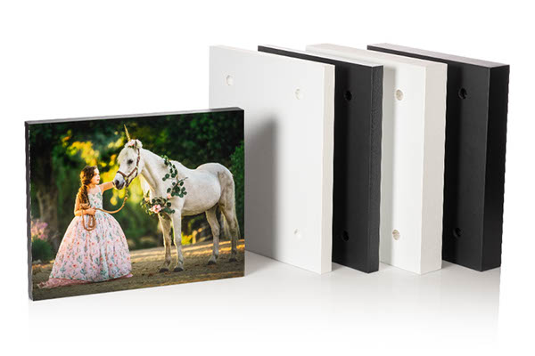 If one side is good, then two sides are better! A frameless, simplistic look for the minimalist, modern home. Great for a desktop easel to flip back and forth for a fresh look. Personalize for your client with names and image date. Add your logo for additional branding. OR…use as an economical way to gift your client or create an incentive for a higher-level package purchase. Two prints mounted front and back on black styrene provide a rigid, versatile two-sided product.